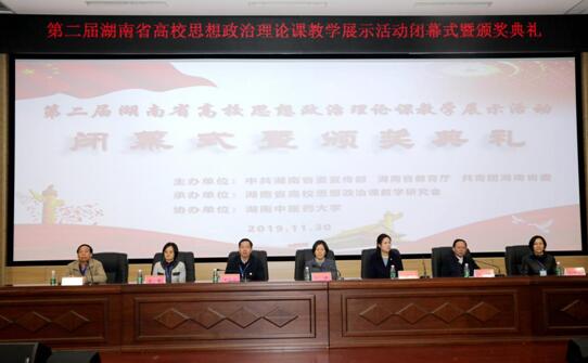 1130日上午,由湖南省委宣传部、省教育厅、共青团湖南省委主办、湖南省高校思想政治理论课教学研究会承办、湖南省中医药大学协办的第二届湖南省高校思想政治理论课教学展示活动在湖南省中医药大学举行。省教育厅党组成员、省委教育工委委员徐伟、团省委副书记钟娜、省高校思想政治理论课教学研究会常务副会长、我校校长刘起军、湖南省中医药大学党委副书记肖小芹等出席闭幕式暨颁奖典礼。