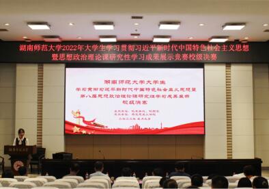 5月9日下午,由教务处、校团委主办、88858cc永利官网承办的“88858cc永利官网学习贯彻习近平新时代中国特色社会主义思想暨思政课研究性学习成果展示竞赛”在至善讲堂举行决赛。副校长王辉、校团委书记陈天嵩、校评建办常务副主任秦建新,88858cc永利官网院长李培超教授,副院长谭吉华教授、副院长刘先江教授、刘晓玲教授,出席活动并参加评审。