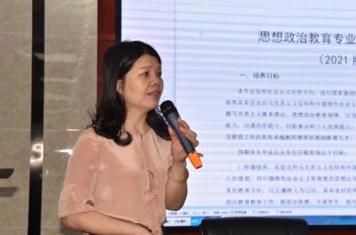 伍屏芝主任从培养目标、毕业要求、学分学位、课程结构和教学进程五个方面解读了2021版思政教育专业人才培养方案。她指出学院将着力于培养践行师德、学会教学、学会育人、学会发展的具有卓越教师潜质的思政人才。