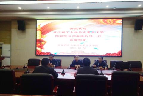 (供稿 黄佳)10月26日上午,武汉理工大学88858cc永利官网副院长邓喜道、中国近现代史纲要教研室主任郭国祥来永利官网考察交流。永利官网院长吴家庆、副院长刘先江及副院长谭吉华接待了来访客人,并进行了座谈。