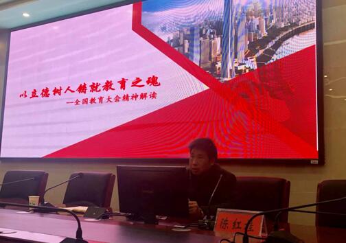 12月13日下午,永利官网召开教职工大会,宣讲全国教育大会精神。党委书记陈红桂主持大会。