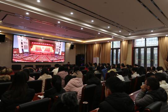 永利官网组织全体师生观看庆祝改革开放40周年大会直播,学习领悟习近平总书记重要讲话精神,感受40年来中华大地的伟大变革。吴家庆院长、刘先江副院长、汤小红副院长等院领导及部分教师参加教师会场的学习;谭吉华副院长主持研究生会场的学习活动。
