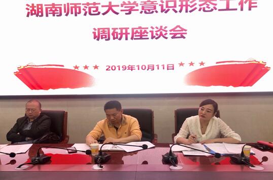 根据学校党委关于开展“不忘初心、牢记使命”主题教育专题调研实施方案的安排,10月11日上午,党委宣传部调研组在88858cc永利官网举行意识形态工作专题调研座谈会。党委委员、宣传部部长晏昱、宣传部副部长王绍平、88858cc永利官网党委班子成员、教师和学生代表参调研座谈会。