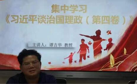 谭吉华教授全面、深入的解读了第四卷中的重要篇目--《坚定不移的推进中国式现代化》。各位党员聚焦“中国式现代化”这一主题纷纷发言,在深入讨论和相互启发中升华对习近平新时代中国特色社会主义思想的理解。