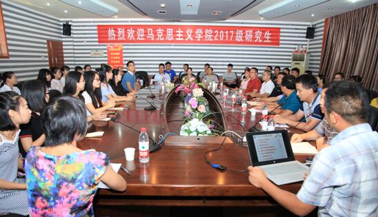 陈红桂代表学院对17级研究生新生的到来表示热烈欢迎和衷心祝贺,他简要介绍了学院的发展历史、现状;要求同学们把握马克思主义理论学科发展的大好时代,确立对马克思主义理论的自信,同时清醒的意识到马克思主义理论建设所面临的挑战,增强责任感和使命感;希望同学们潜心研读马克思主义理论经典,关注社会发展对马克思主义理论提出的新课题,不断开拓视野,创新思想,提升马克思主义理论研究的境界,扩大马克思主义理论的话语权。