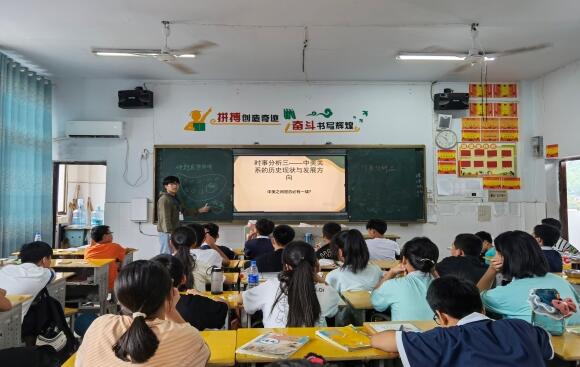 (通讯员 熊瑶 袁芳 曾利伟)为拓展学生视野、提高学生时政解读能力,加强学生的思辨能力,88858cc永利官网“关爱在行动”支教队开展了时事分析特色课程。此次课程由支教队队员张稼轩授课,授课对象为青烟中学预初二(1)班的学生。