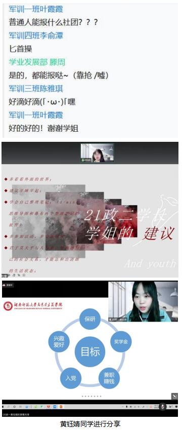 (通讯员 田欣羽 邓雁文 袁芳)9月24日晚,学院学生会学业发展部举办线上新老生交流会,帮助22级同学们获得更多有关大学生活的认识,更好地适应与规划大学生活。20级思政教育一班黄钰婧、21级思政教育二班刘阳阳、学业发展部三位负责人与22级部分同学参加交流。