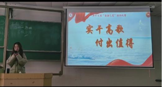 决赛主题为“博学笃行为奋进,自强不息忆初心”,赛前参赛选手根据主题撰写演讲稿并制作相关幻灯片,以此丰富演讲形式和演讲内容。彩排中选手按照顺序依次上台演讲,权益维护部成员帮助选手记录演讲时间及相关问题。演讲结束后,权益维护部成员将选手演讲中出现的问题进行整合,并联系选手进行调整与修改。