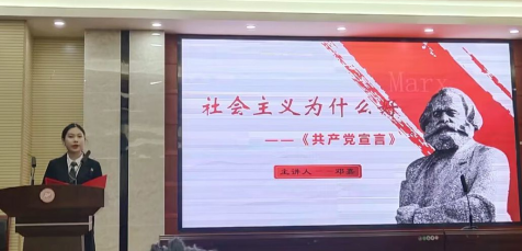 活动伊始,主持人介绍了此次红色论坛的主题及现实意义,全体成员共唱共青团团歌。随后,欧阳帆、刘芊芊、邓嘉、庄依诺、秦佳期五位主讲人结合自身阅读《共产党宣言》的心得体会,回答了“社会主义为什么好”这一问题。同时,各小组成员还进行了情景剧、说唱、朗诵等多种形式的特色表演。活动最后,李风华教授对此次红色论坛活动进行点评总结,他充分肯定了同学们的研读成果,提出了结合历史研究进行研读的阅读新路径,鼓励同学们将读原著、学原文、悟原理当成终身的事情一直坚持下去,感受人类解放事业的伟大意义。