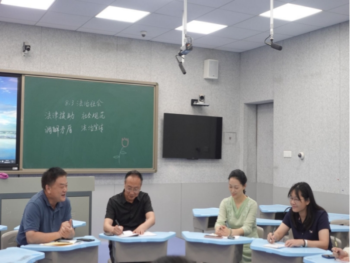 此次公开课展示活动由实习队副队长陈宝菁主持。实习队员罗国平以“探究文旅经济火热背后的政府作为”为总议题,通过“长沙为何成为‘网红’?”“从‘网红’到‘长红’政府何为?”两个问题依次推进,讲授《法治政府》相关内容;实习队员邓诗萌以反对校园欺凌为主线,从“以法为盾,护‘未’美好明天”“与法同行,汇聚法治力量”“守护花开,共建法治社会”三个层次带领学生学习建设法治社会的内涵、措施和意义。