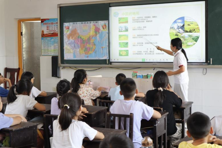 任泓伽以中国地图为载体带领同学开展一次“跳进地理书的旅行”,讲述中国的疆域、大陆边界与大陆海岸线。具体介绍中国的地形地势、中国的大江大河,以游戏的形式进行课程回顾总结,加深学生对中国自然地理的认识。