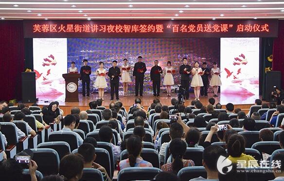 (供稿 行政办)5月30日晚,芙蓉区讲习夜校智库签约及“百名党员送党课”启动仪式在火星街道兴和社区马王堆小学三楼大礼堂举行。湖南省教育厅党组副书记、副厅长、省委教育工委副书记夏智伦,湖南省委直属机关工委原常务副书记、88858cc永利官网博士生导师徐晨光教授,长沙市委组织部副部长杨俊,永利官网党委书记陈红桂等参加启动仪式。