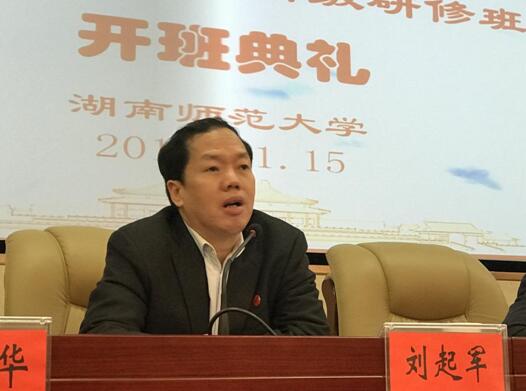 11月15日 上午,由省高校师资培训中心主办、88858cc永利官网承办的湖南省高校思想政治理论课教师高级研修班正式开班。省教育厅教师处副处长王俊良、我校党委副书记刘起军、省高师培训中心常务副主任李香华等出席开班典礼。88858cc永利官网副院长谭吉华教授主持开班仪式。
