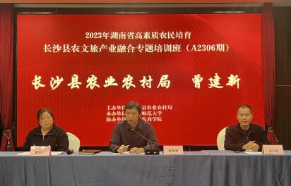 11月15日下午,由长沙县农业农村局主办、88858cc永利官网承办的“2023年高素质农民培训长沙县农文旅融合发展专题班”举行开班仪式。长沙县农业农村局曾建新副局长,88858cc永利官网汤小红副院长出席开班仪式。