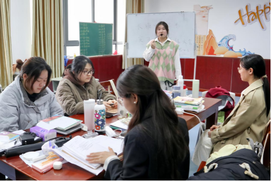 实习生代表凤馨结合自身经历分享教学心得。她提出,首次授课如同“实战演练”,会暴露教学问题,但也能促进师范生成长。针对首次上课存在的学生互动问题,她也将在后续课程中增设学生活动环节,争取提高学生课堂参与度。