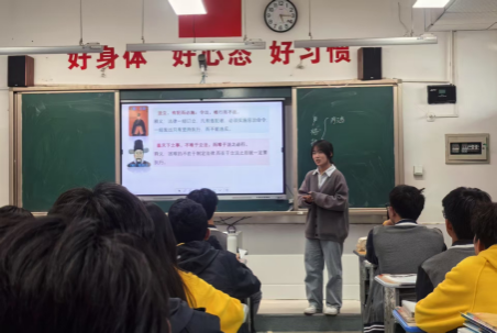 四位实习生在正式授课前进行了集体备课,并结合各班特色进行了个人复备,教学内容同为《严格执法》这一框题。在授课过程中,实习生们均以视频为导入,引发学生兴趣;并通过材料展示、小组讨论等环节引导学生分析材料与知识点的内在联系。最后,实习老师们借助问答等方式带领学生梳理总结,帮助学生搭建起清晰的知识框架,巩固所学知识。