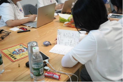 实践团调研组成员做笔记
