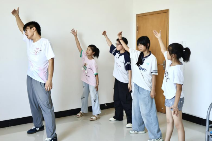 朝阳辅导班的五位老师根据学生成长需求,精心设置了舞蹈、合唱、五步拳、朗诵和话剧五大兴趣课程。舞蹈教学中,孙娄勇采用分解教学法,循序渐进地指导学生掌握经典舞蹈动作,并耐心讲解动作要领;音乐教室内,朱妍静指导学生排练歌曲《我会等》,有效提升学生的音乐素养。