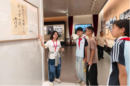 讲解过程中,唐卓雅结合馆内文物及档案资料,对任弼时同志的革命实践进行了系统性阐释。学生们通过实物展陈、图文资料等载体了解相关历史细节,重点观摩了其青年时期加入社会主义青年团、革命战争年代参加长征及新中国成立后当选中共中央书记处书记等关键节点的史料。