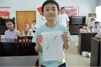 互动环节,主讲人以故事盲盒游戏为载体,系统总结和阐释了鲁迅的名言,并搭配关键词寻宝互动,加深学生对相关名言的理解。在“给鲁迅的回信”环节,实践团成员鼓励学生分享想对鲁迅说的话并在将自身理想以绘画形式展现在纸上。活动即将结束时,主讲人借鲁迅对“新少年”的期盼激励朝阳辅导班学生奋发向上。