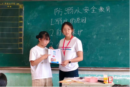 实践团成员为学生讲解防溺水安全知识