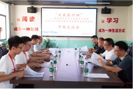会上,与会人员共同观看了任弼时红军学校宣传片及授牌授旗仪式影像资料。任国军从历史沿革、办学特色、红色教育成果等方面对任弼时红军学校展开介绍,并对李泳波一行人的到来表示欢迎。据他介绍,该校始终秉持传承红色基因、赓续革命精神的办学理念,近年来在课程体系建设、实践教学活动等方面取得显著成效。实践团负责人就此次“三下乡”暑期社会实践活动开展情况作专题汇报。